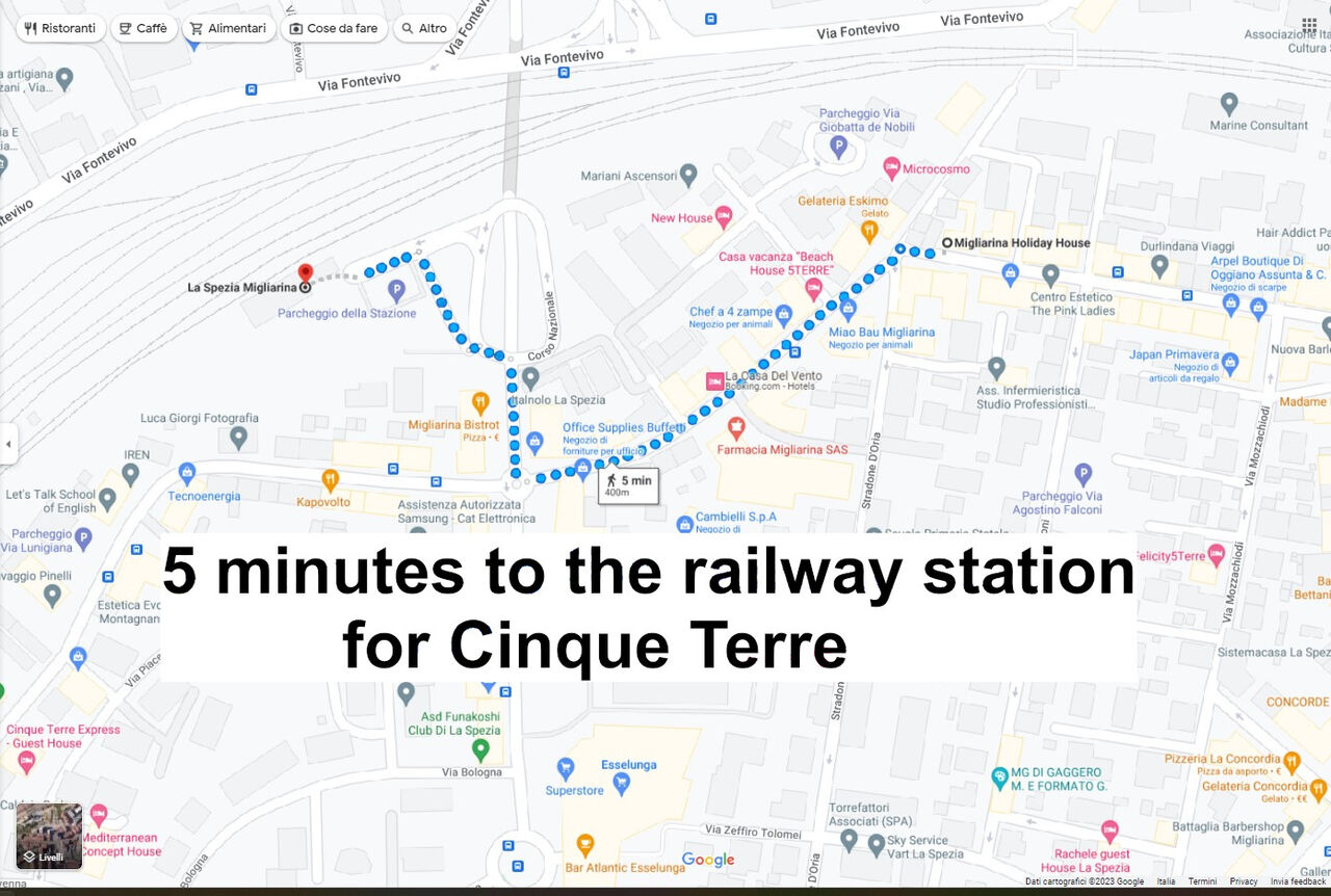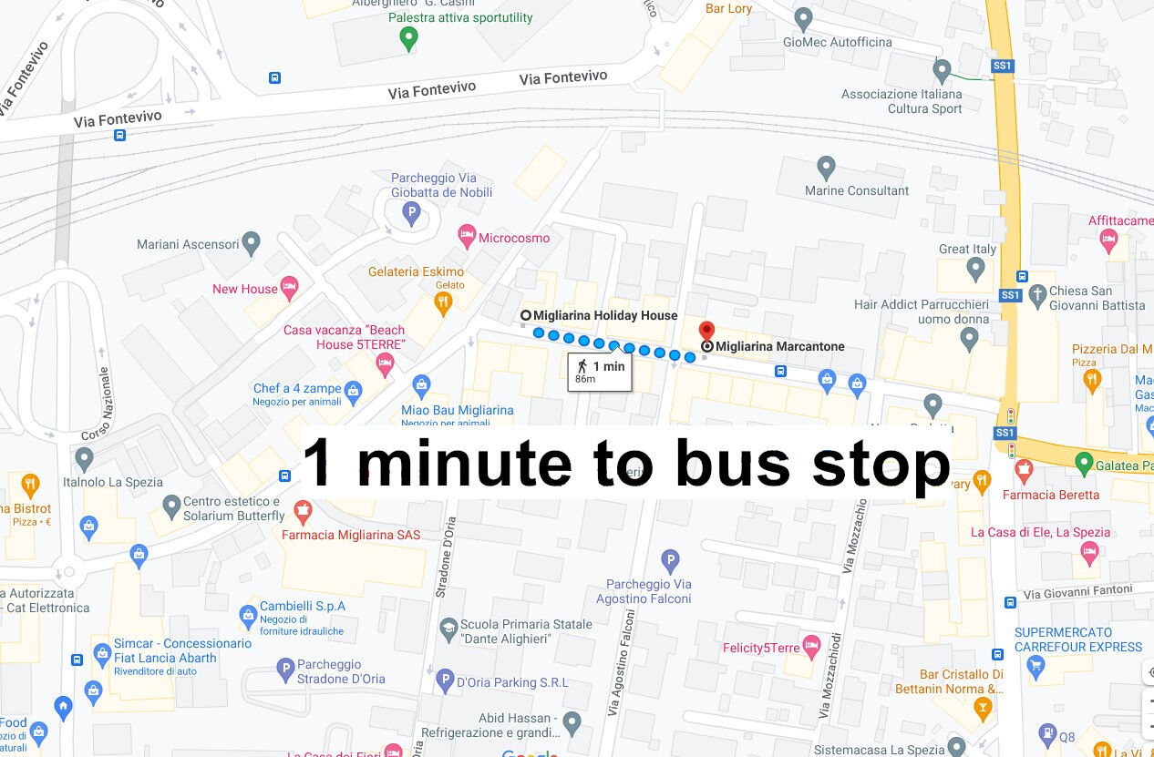 Appartamento è situato in ottima posizione con facilità di parcheggio auto gratuito in zona. Stazione ferroviaria di Migliarina è a pochi passi dove raggiungere direttamente le famose Cinque terre, Levanto, Bonassola. Nel giro di pochi metri potete trovare: Stazione ferroviaria, ristoranti, bar, fermata autobus, Banca, Minimarket e Supermercato, parcheggi con stazioni di ricarica per auto elettriche. Facilmente raggiungibile il centro dove troverete Musei, il castello San Giorgio, la passeggiata a mare e i battelli per raggiungere Portovenere e il giro delle isole (Palmaria, Tino e Tinetto). Poco distanti le altre località del Golfo dei Poeti: Lerici e San Terenzo, Tellaro, Portovenere